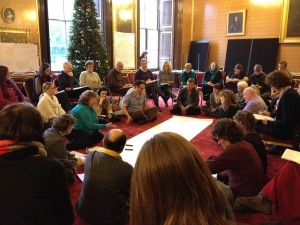 I needn’t have worried because it was planned and facilitated in such a way that the participants became listeners, and only spoke if they felt moved to do so. As they worked through its clear structure they did, indeed, become participatory leaders. This was in contrast to other events at the Parliament which were led by keynote speakers, with questions afterwards from the floor. This time everyone was “on the floor”, and there was plenty of moving around. A sense of dynamic energy and engagement was created, instead of an “us and them” situation, with the speaker standing and the rest forced to stay seated.